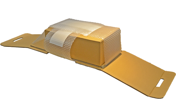 パソコン等の精密機器を梱包する緩衝材付き包装用箱です。